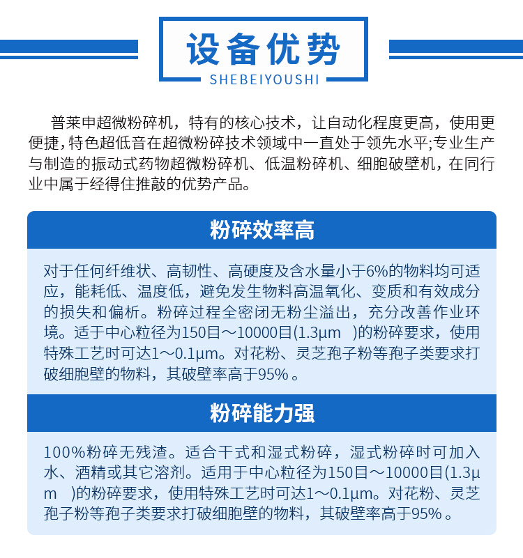 2、真空 普萊申粉碎過程采用真空環境,中藥環境安全衛生